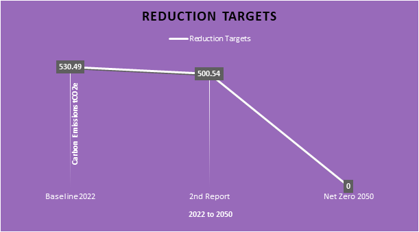 Below is a graph sowing our target emissions from the 2022 baseline figure 2024-2025 figures and the intended goal of the Net Zero target that has been set for 2050.