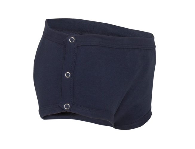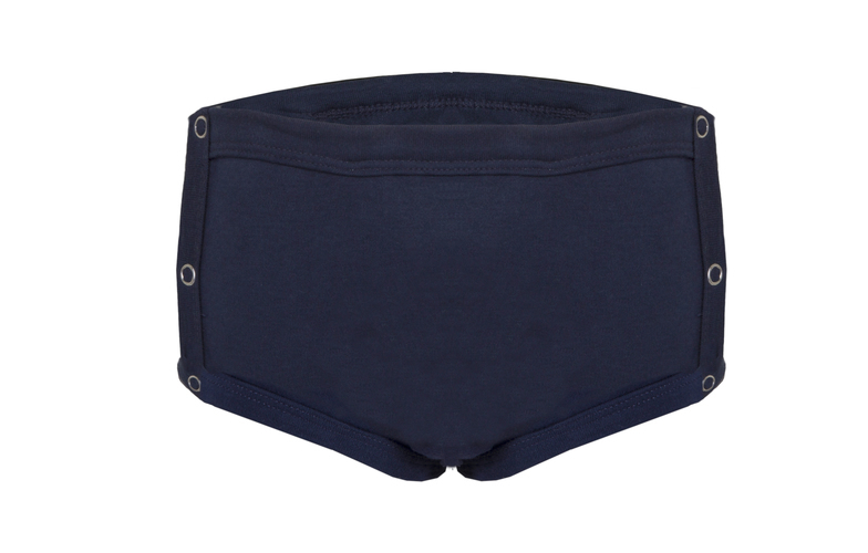 Boys Drop Down Trainer Brief - With built in Absorbent pad, waterproof backing, Navy Cotton bound elasticated waistband and legs with press studed sides - Designed for daytime wetting as a training brief as it feels like regular underwear but allows the child to make the connection between feeling wet and going to the toilet