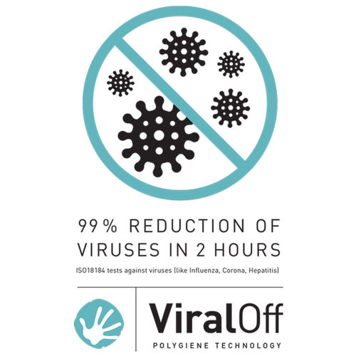 Consisting of a layer of 100% spun cotton, a white polycotton layer and a layer of the new ViralOff® fabric. This fabric is treated with the latest polygiene technology completing the 3 layers of this mask. Along with the soft elasticated ear hooks and a wired nose bridge to help hold the mask securely in place.