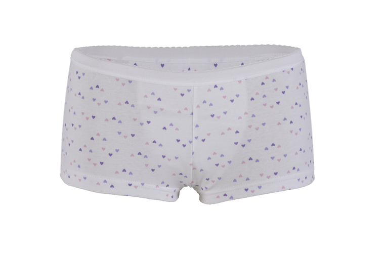 Ladies Inco-Elite Printed Shortie Brief - White with Purple Hearts (4015WP)