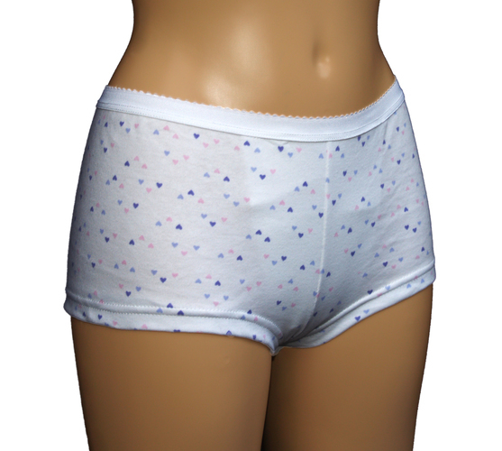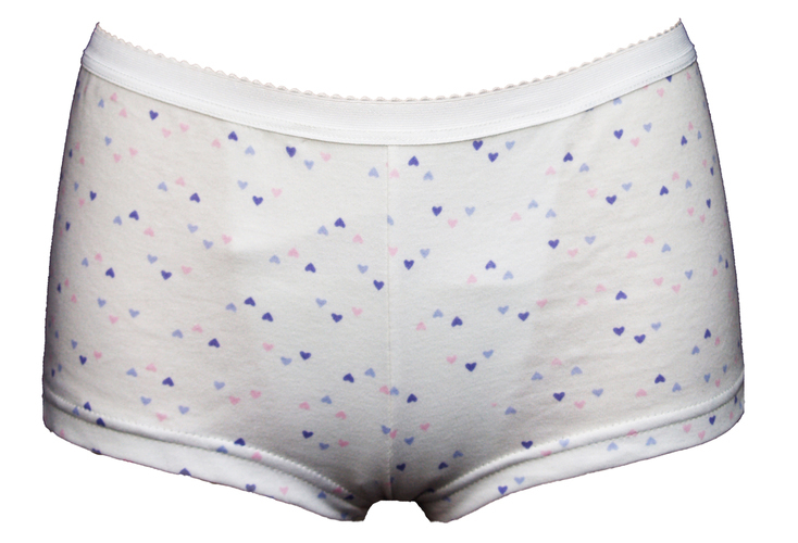 The Ladies Printed Shortie Brief is designed for light to medium stress incontinence and gives the wearer peace of mind and protection just when its needed most. Made with high Quality 100% cotton fabric with Vivid Printed Hearts and a decorative elastic waistband it gives comfort and long lasting quality. It gives a more modern look to the briefs whilst losing none of what the brief is designed for. P&S Underwear is just like wearing regular underwear but giving you that added extra protection that our incontinence underwear provides.